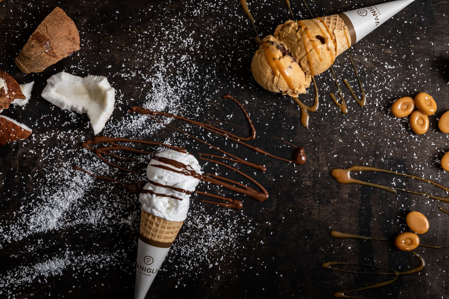 המרכיבים משולבים עם ידע רב ושיטות עבודה מסורתיות ומודרניות המושפעות מהסגנונות האיטלקי והצרפתי לכדי גלידה ארומטית במרקם קטיפתי.